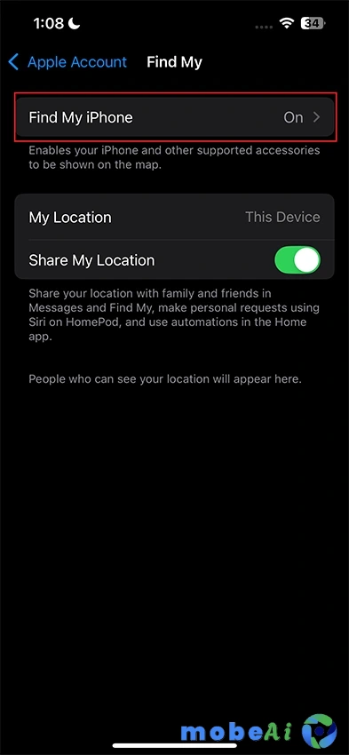 1. إيقاف “Find My iPhone”: قبل البدء في عملية التراجع، يجب عليك إيقاف ميزة “Find My iPhone” من إعدادات جهازك. هذه الخطوة ضرورية لأنها تتطلب أيضًا تعطيل حماية الجهاز المسروق. يمكنك تمكين “Find My iPhone” بعد إتمام عملية التراجع.